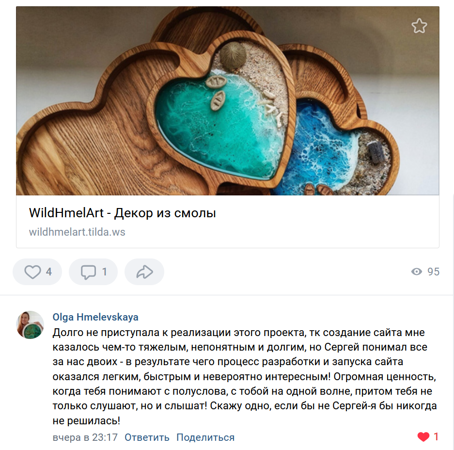 Лендинг мастера, работающего с эпоксидной смолой