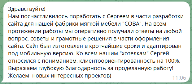 Свяжитесь со мной любым удобным для вас способом, и обсудим ваш будущий сайт. Сами убедитесь - работать со мной легко и приятно